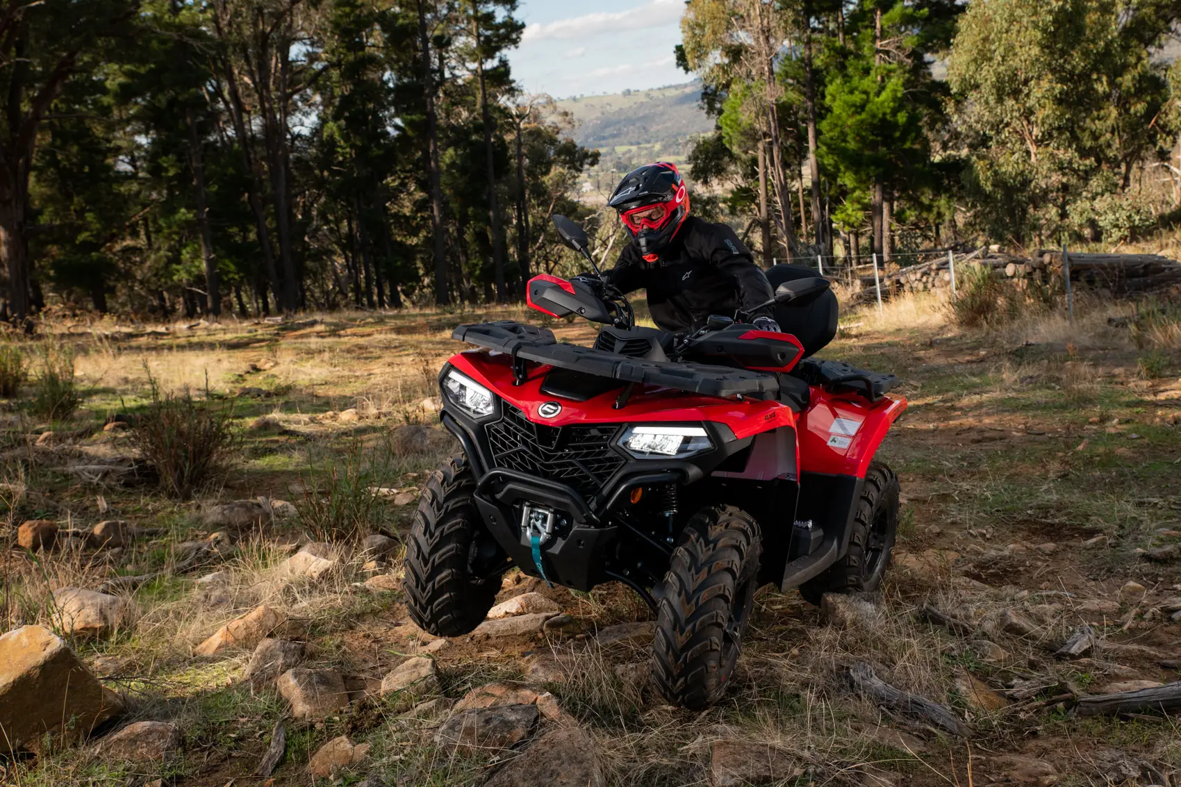 El motor de 495 cc del CFORCE 520 añade más potencia y más posibilidades a la ágil plataforma ATV de tamaño mediano. Mayor torque y accesorios premium como luces LED completas, llantas de aleación de aluminio y neumáticos AT de 25 pulgadas, llevan su robusta capacidad a un nuevo nivel. Los guardamanos y los portaequipajes intercambiables con el sistema de liberación rápida CF-CONNECT añaden comodidad y conveniencia para viajes más largos y tareas más difíciles. Las características estándar, como el cabrestante y una variedad de accesorios disponibles, hacen de la CFORCE 520 una máquina ideal para su trabajo y aventura.